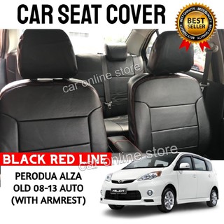 Alza Auto With Armrest Car Seat Cover Pvc Shining Black With Red Line Shopee Malaysia